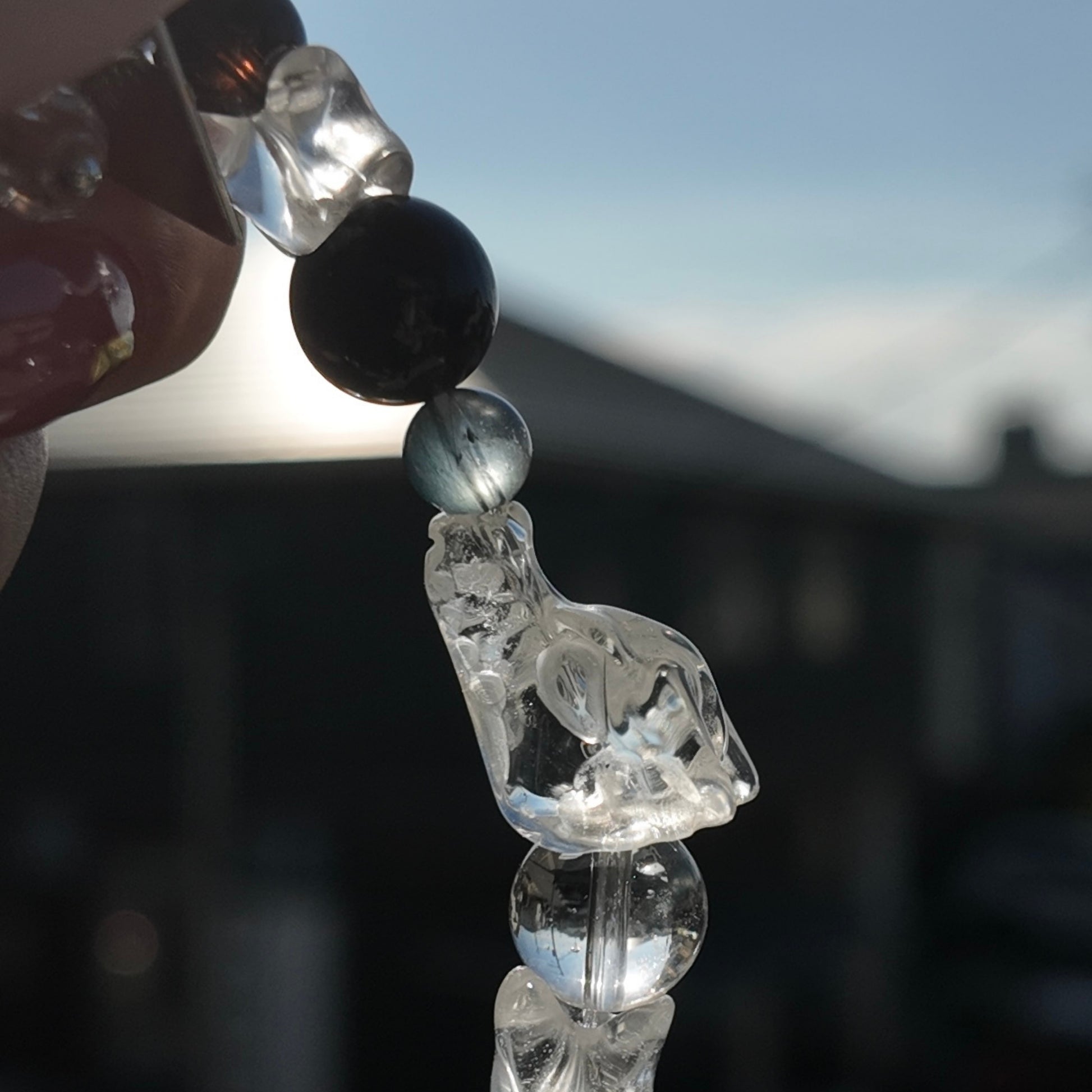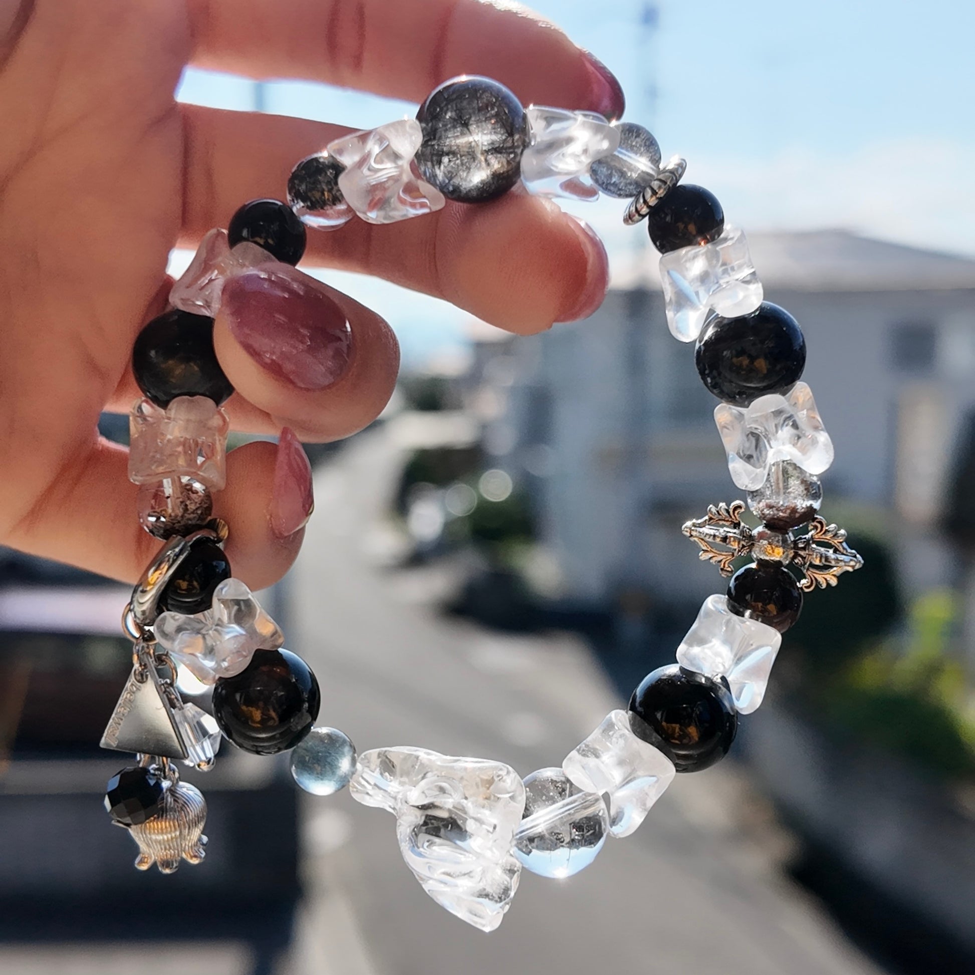 仕事やビジネス・スポーツなど何かを成し遂げたい時の強いお守りとなる相棒龍ブレス♪願掛け要素はもちろん、プロセスまでに邪魔になるものは排除し、たとえ壁が出来たとしても自らの力で乗り越えられる強い適応力をサポートします♪パワ強な石ちゃんたちが龍に乗り、手首をぐるっと一周★成功のお守りブレスです♪