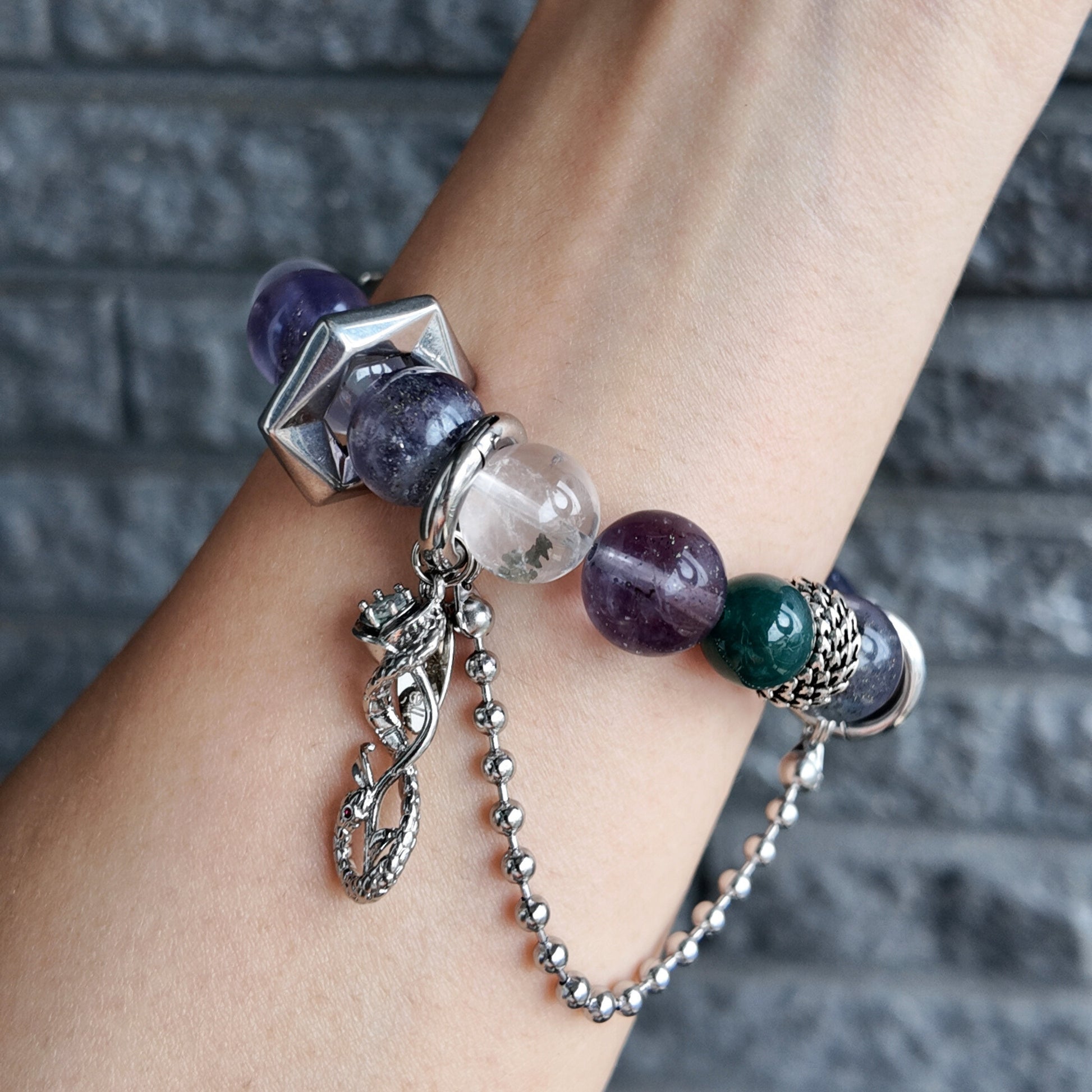 極上粒天然石ブレスレット"夢叶う,繁栄,幸運,自己成長,知的"