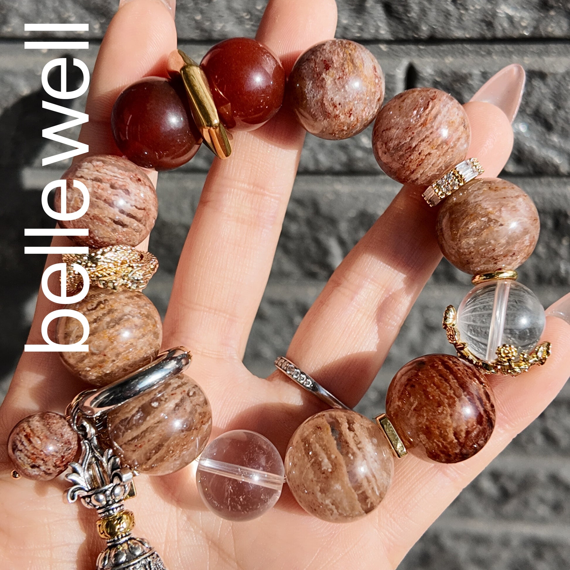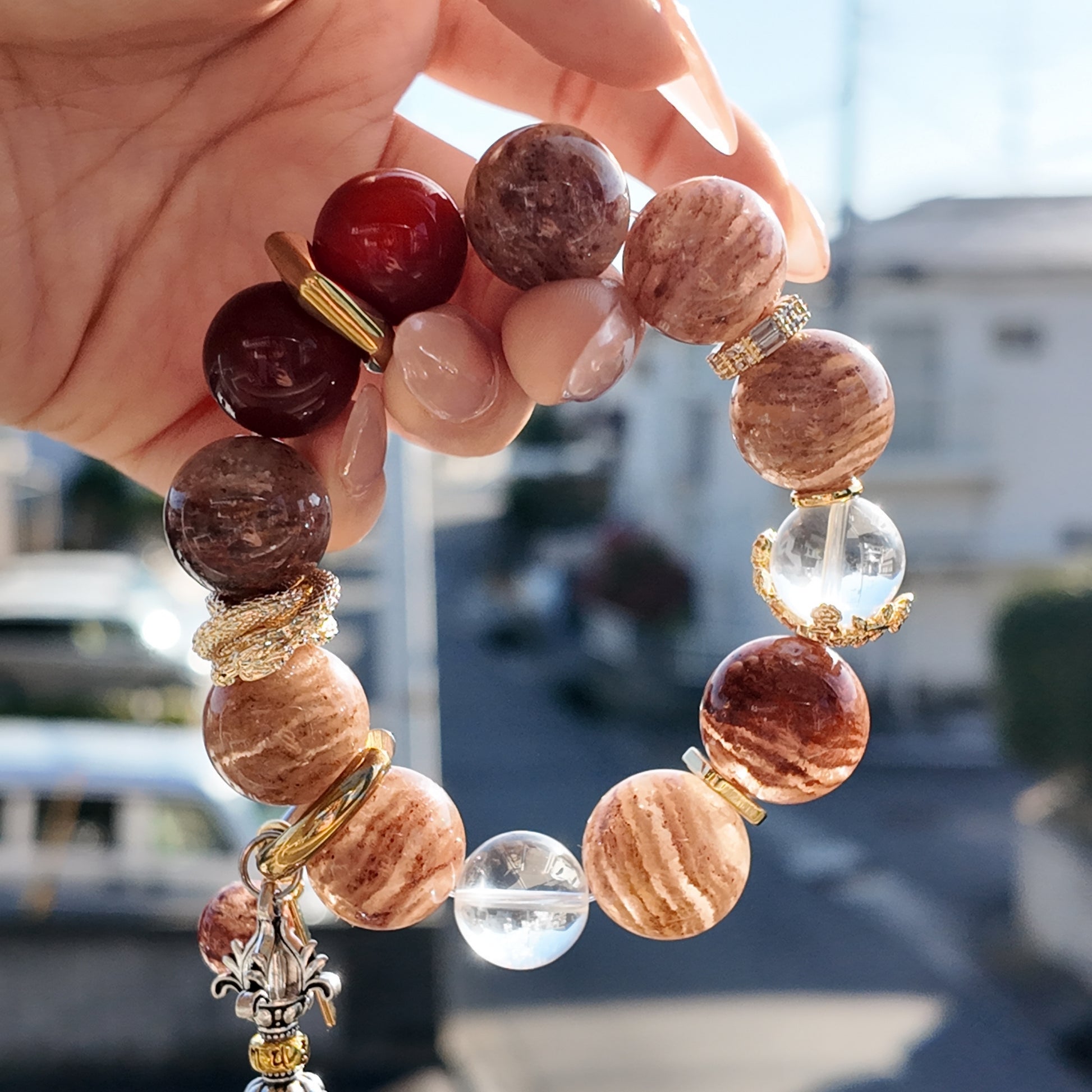 みっちみちに内包したレッドピンク色の大玉千層♪こちら市場にて、かなりの人気色です♡現実主義で安定志向かつ日々を生きるエネルギーをサポートする大玉相棒ブレス。何事も積み重ねる事で、自身が心から納得できる形の自己肯定感と生きる力を感じられるように★金運・財運のお守りとしても◎♪
