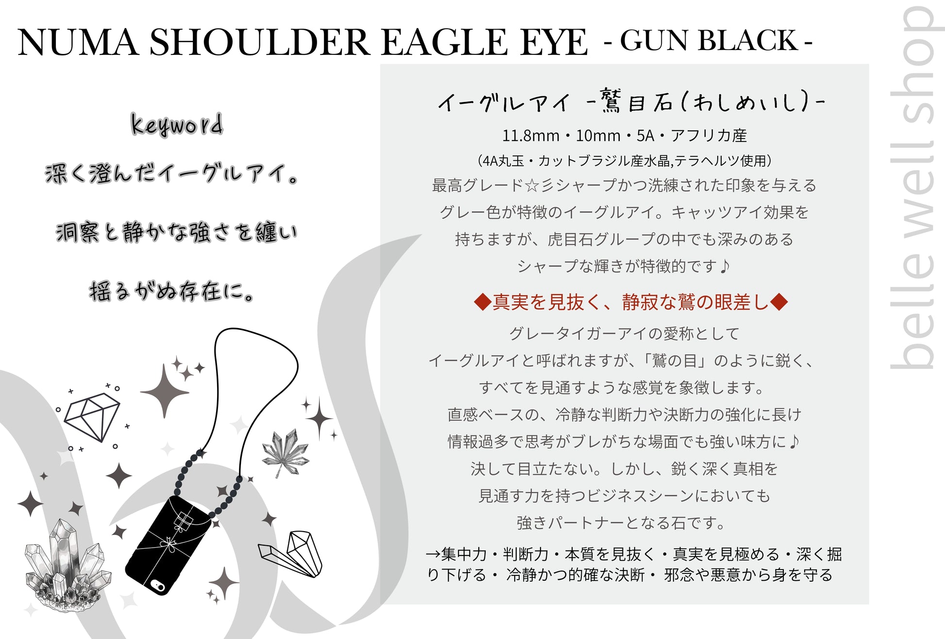 石沼スマホショルダー,高品質イーグルアイ,鷲目石,仕事,本質,洞察力,一点物,煌めきAccessories