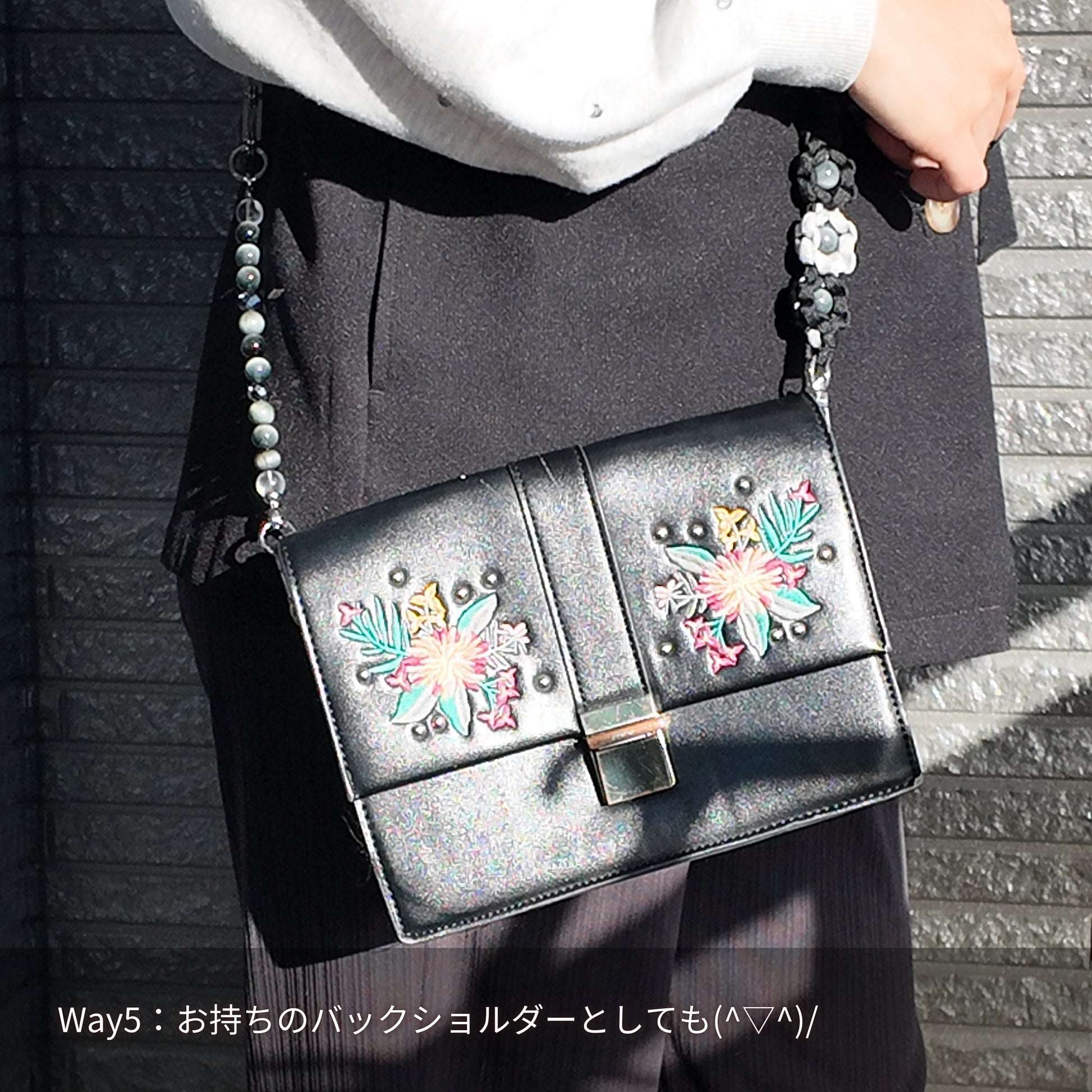 最高グレードのイーグルアイを使用しました♪イーグルアイのお洒落でシャープな印象が映える黒とグレー色の多機能ショルダー♪