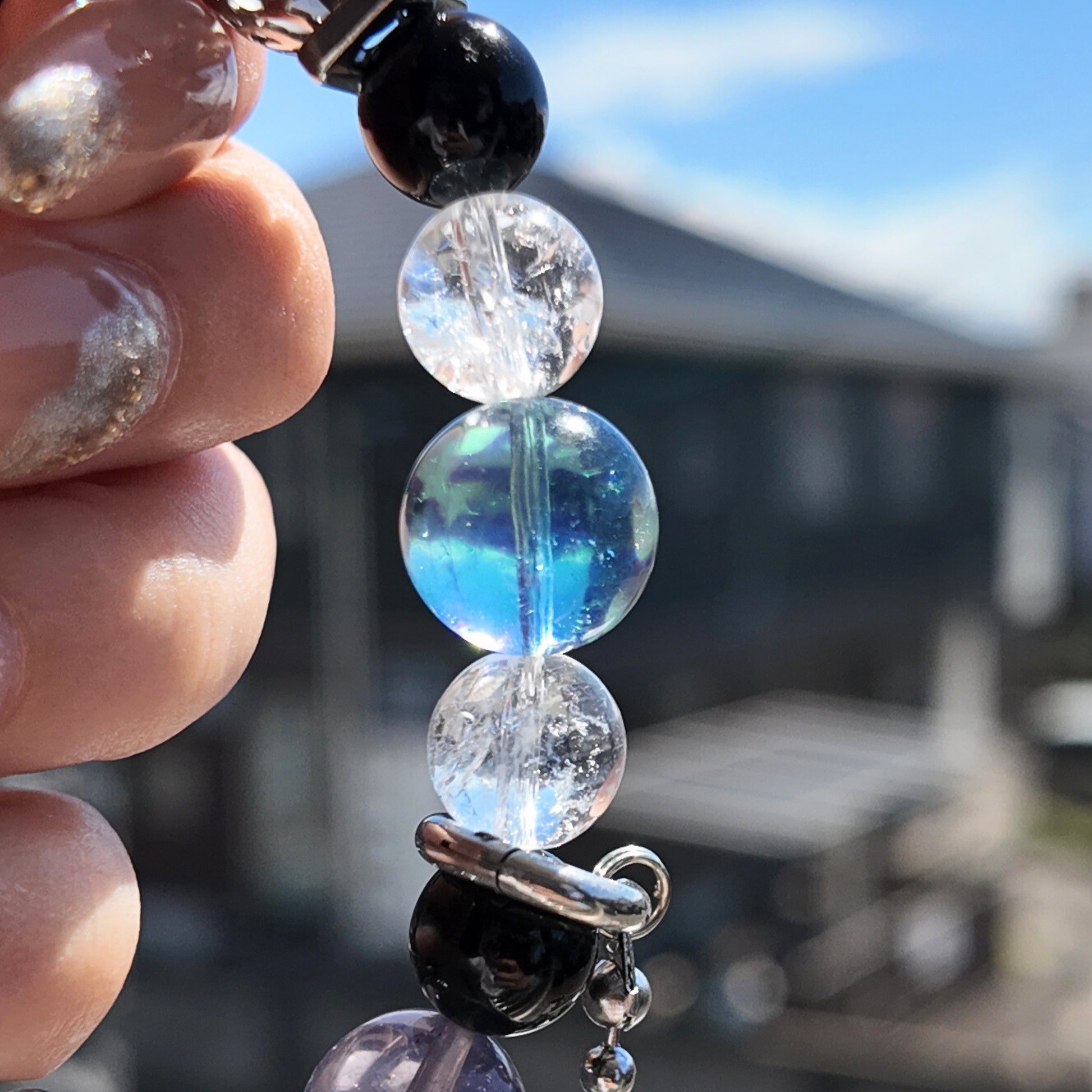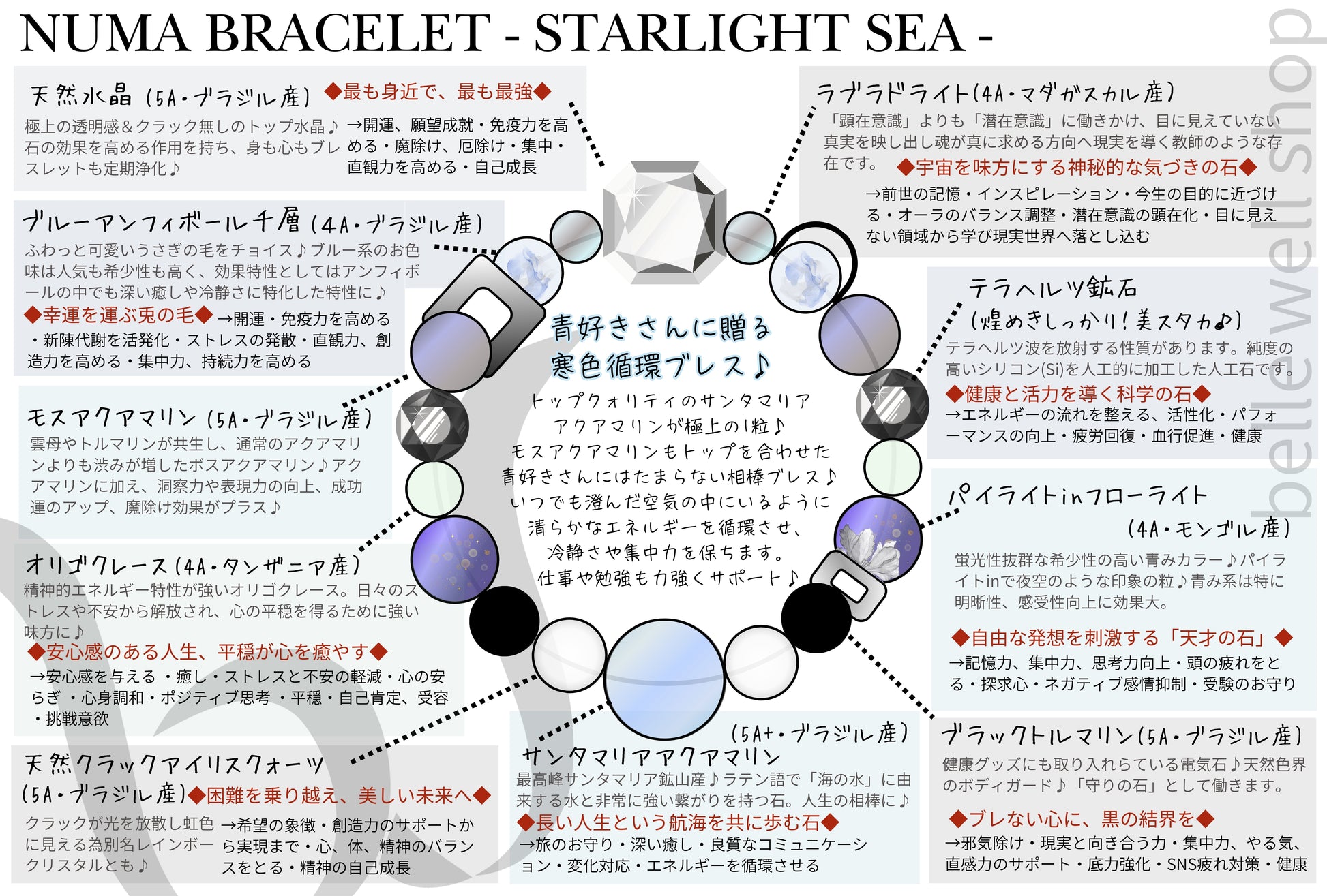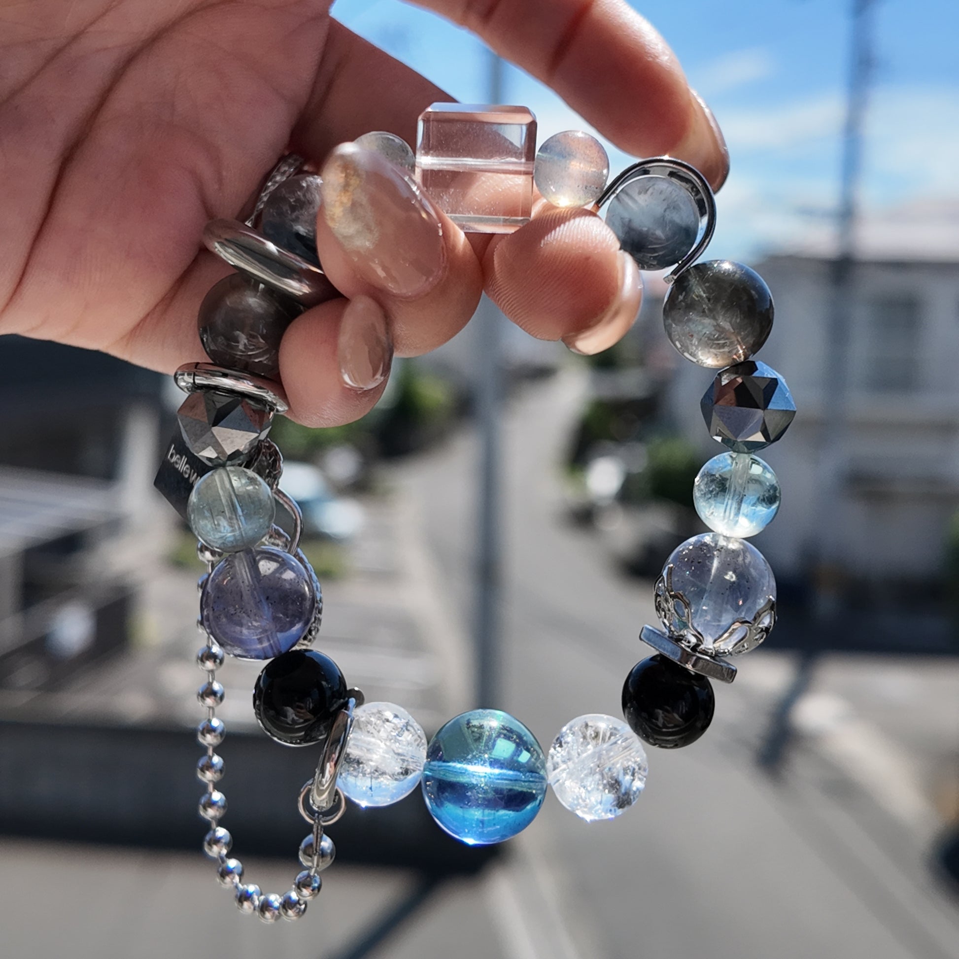 トップクォリティのサンタマリアアクアマリンが極上の1粒♪モスアクアマリンもトップグレードを使った青沼相棒ブレスレット♪いつでも澄んだ空気の中にいるように清らかなエネルギーを循環させ、冷静さや集中力を保ちます。仕事や勉強も力強くサポート♪