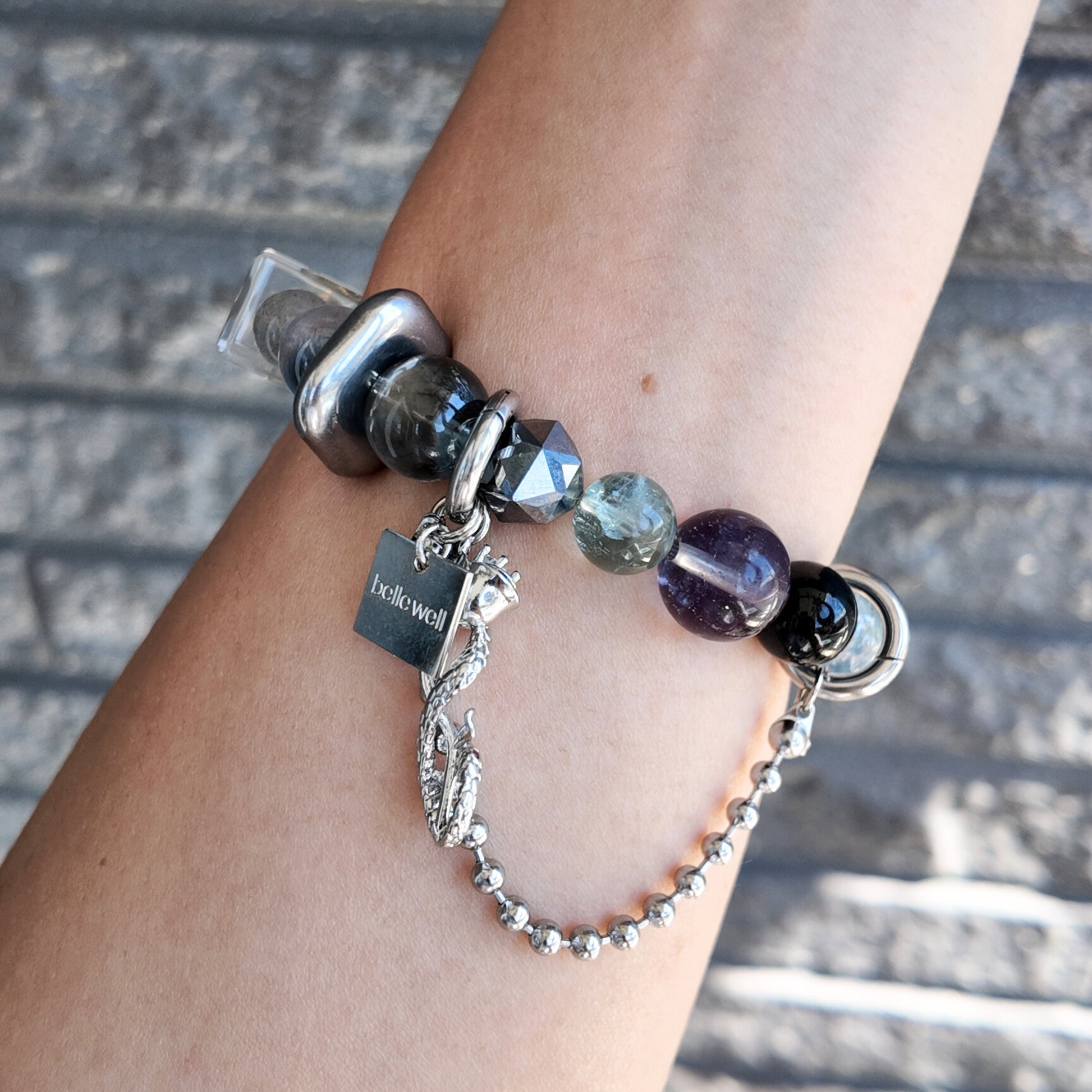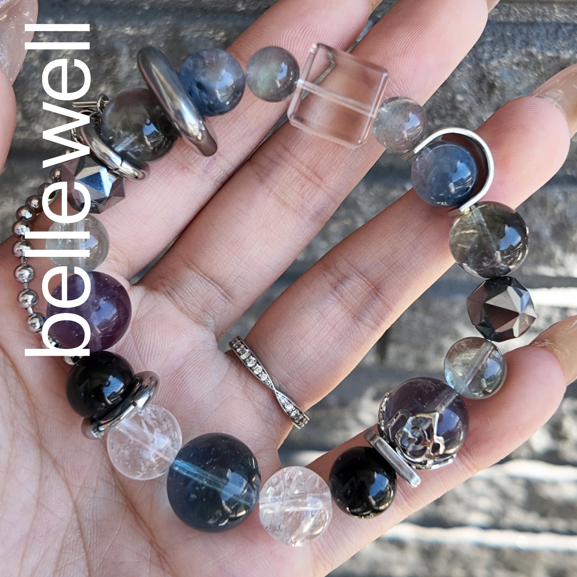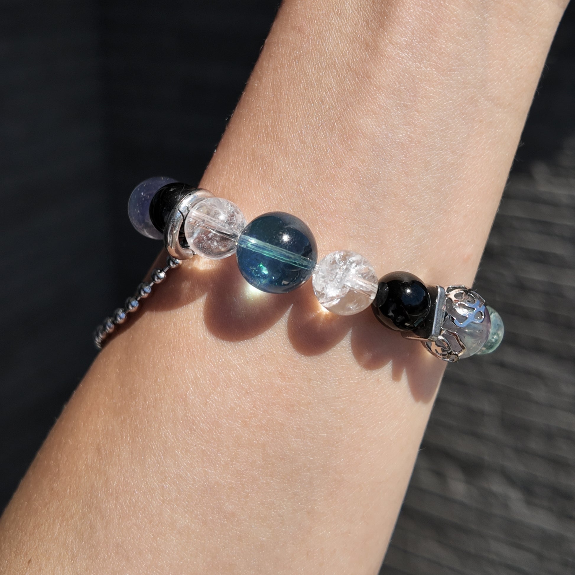 トップクォリティのサンタマリアアクアマリンが極上の1粒♪モスアクアマリンもトップグレードを使った青沼相棒ブレスレット♪いつでも澄んだ空気の中にいるように清らかなエネルギーを循環させ、冷静さや集中力を保ちます。仕事や勉強も力強くサポート♪