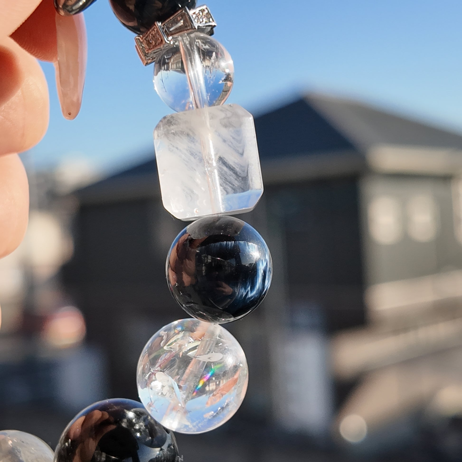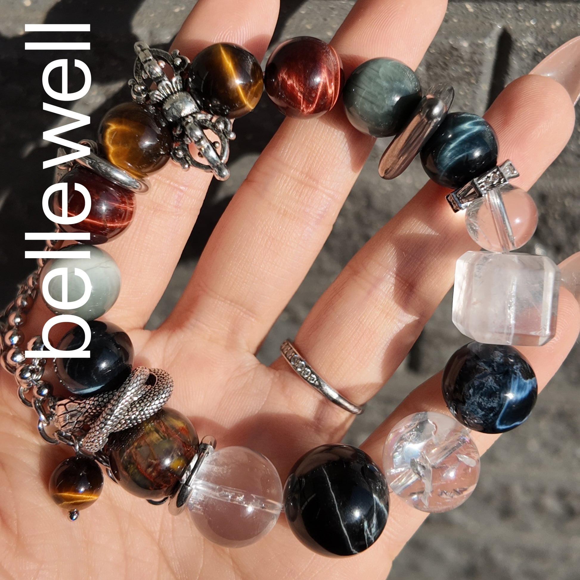 ブレス全体からギラギラと放たれるシャトヤンシーが沼すぎる虎目石系詰め込み沼ブレス♡神秘なアイリスとキューブガーデンを合わせ少し優しさも入れました♪ピーターサイトは2色♪仕事に必要な要素を全方面からカバーしたようなとても心強い相棒ブレスちゃん♪チャームも詰め込みました(^▽^)/