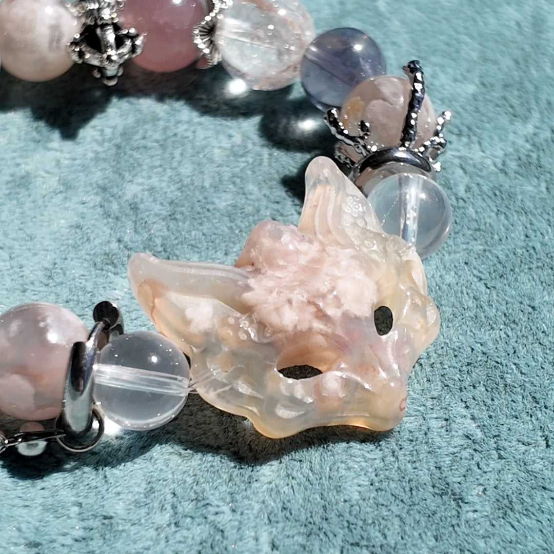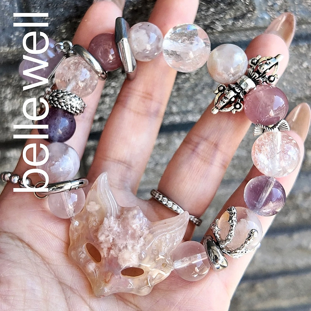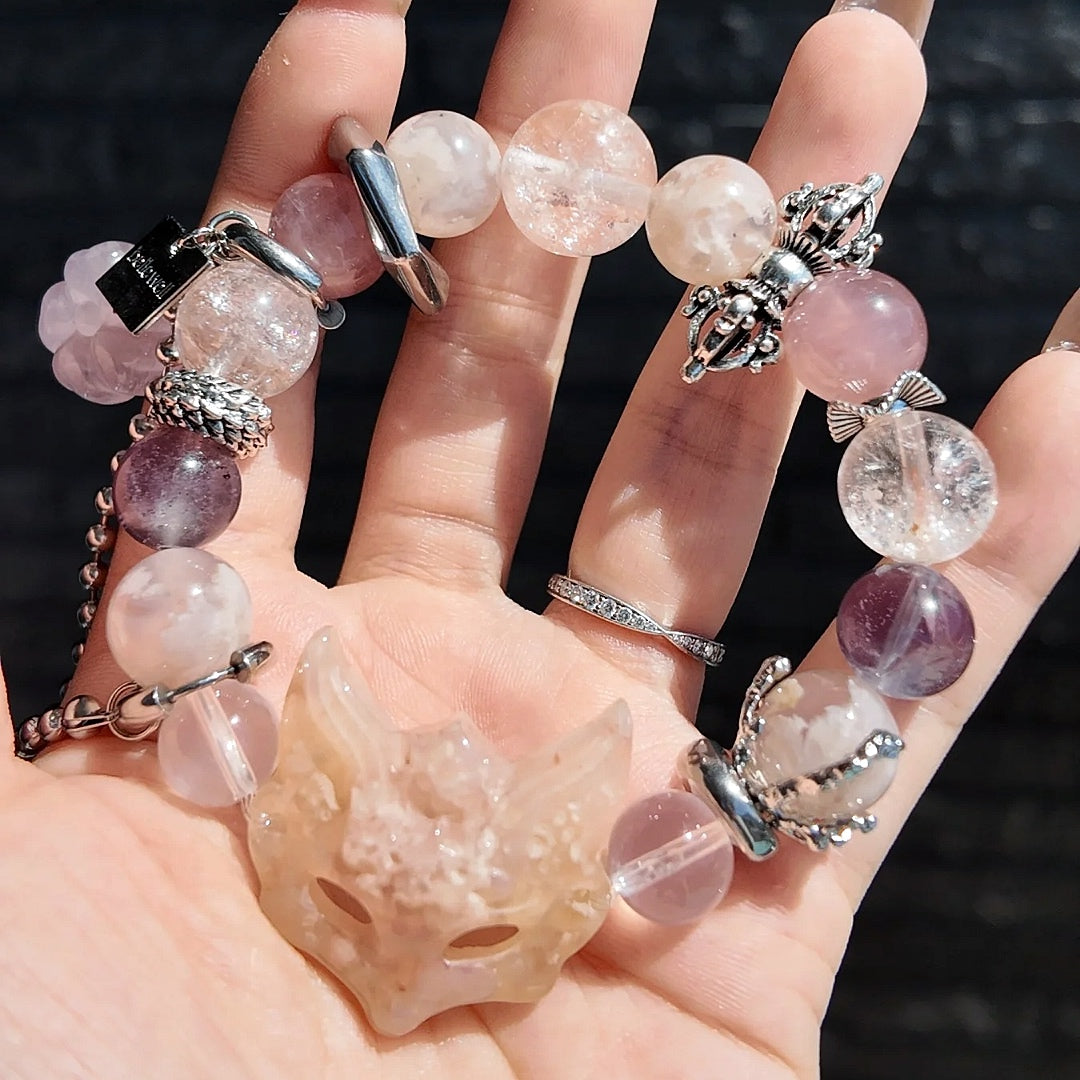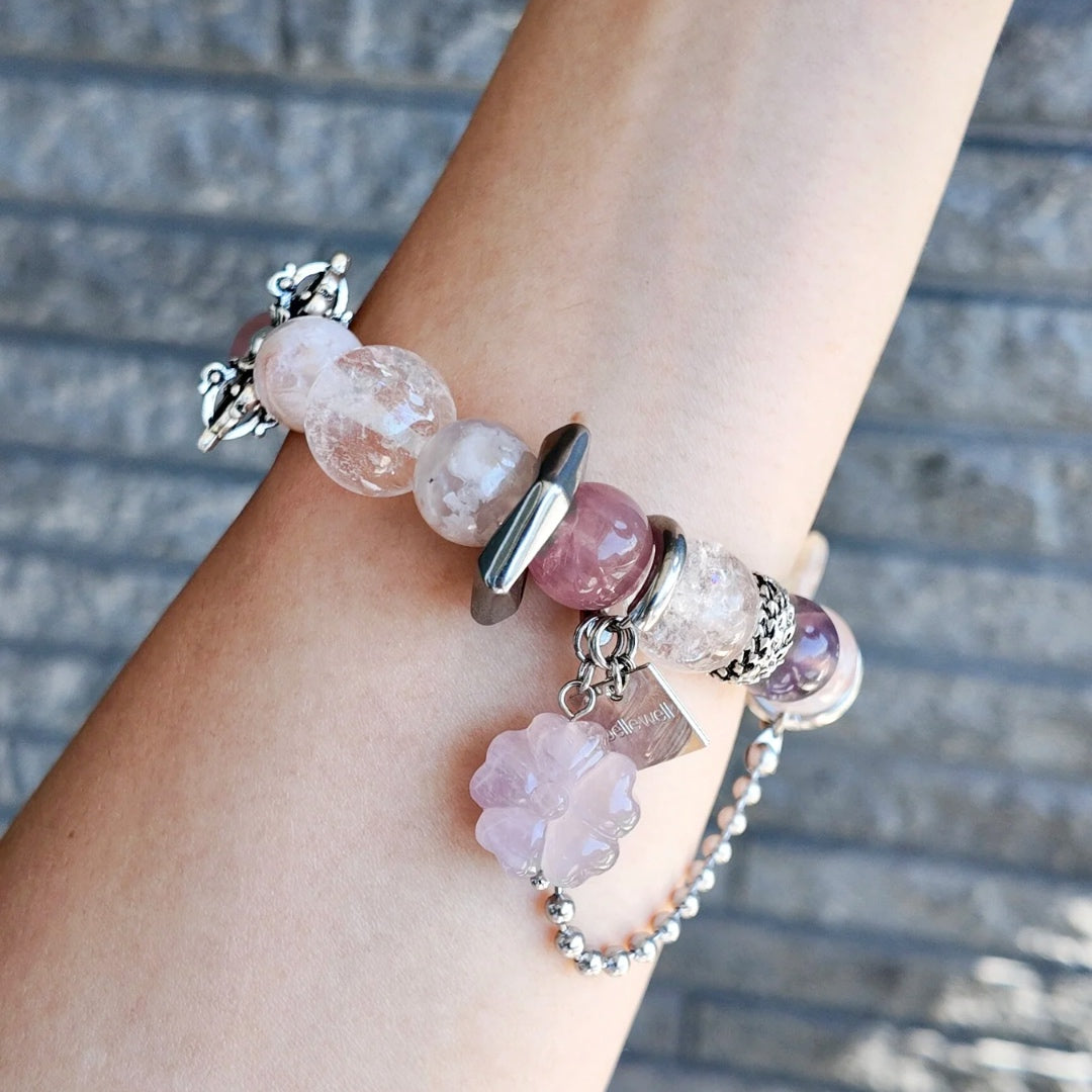 自己愛に知的要素を組み込みました♪大人可愛い女性の守護石にきらめきの蛍石★青みピンクな印象の沼ビジュブレス♪身も心も頭の中もすっきり洗練された知的で魅力あふれる女性、自身が進みたい道をサポートします♪